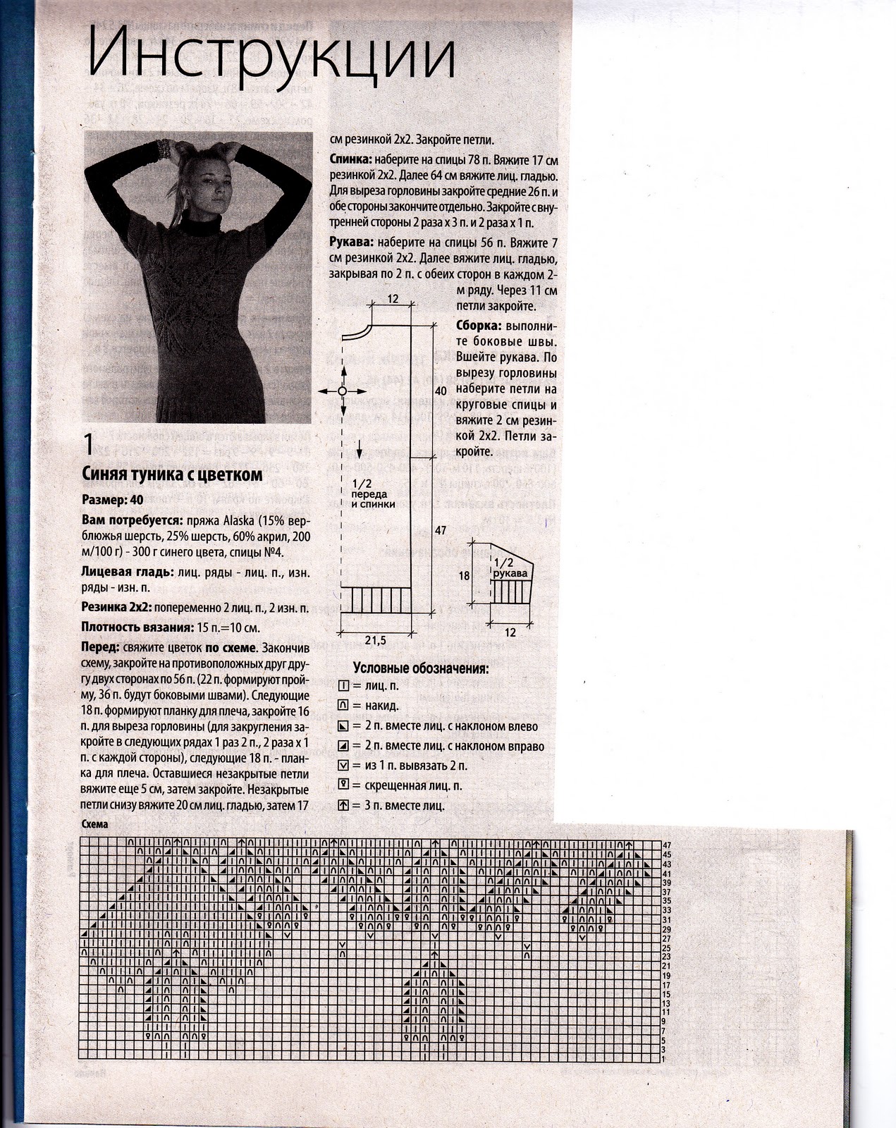 Синяя туника с цветком (Вязанный креатив № 1, 2011)